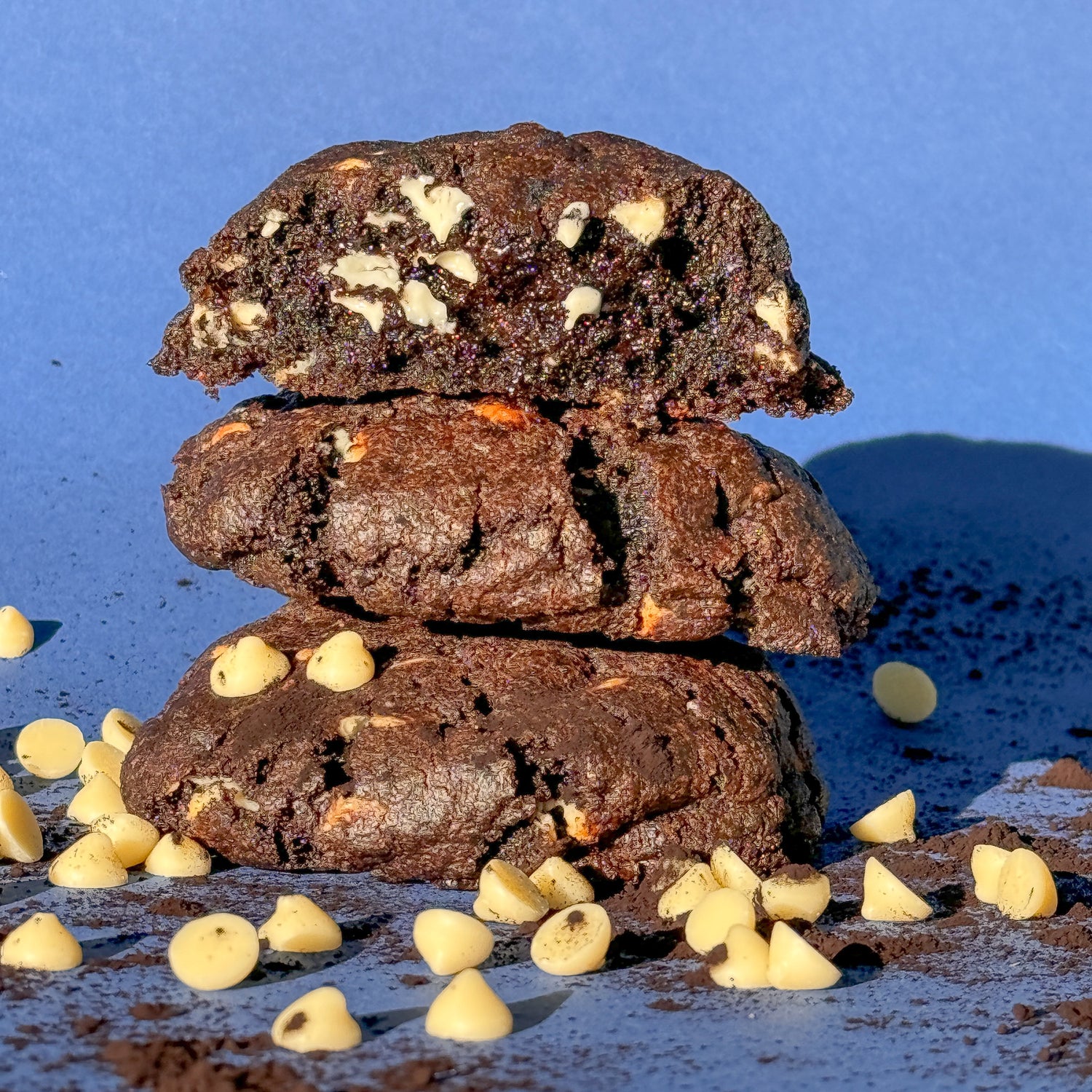 Enjoy our handmade chocolate cookie dough with a unique combination of two intense cocoa flavours, harmoniously united and filled with French white chocolate. An irresistible treat that combines craftsmanship and quality ingredients in every bite.