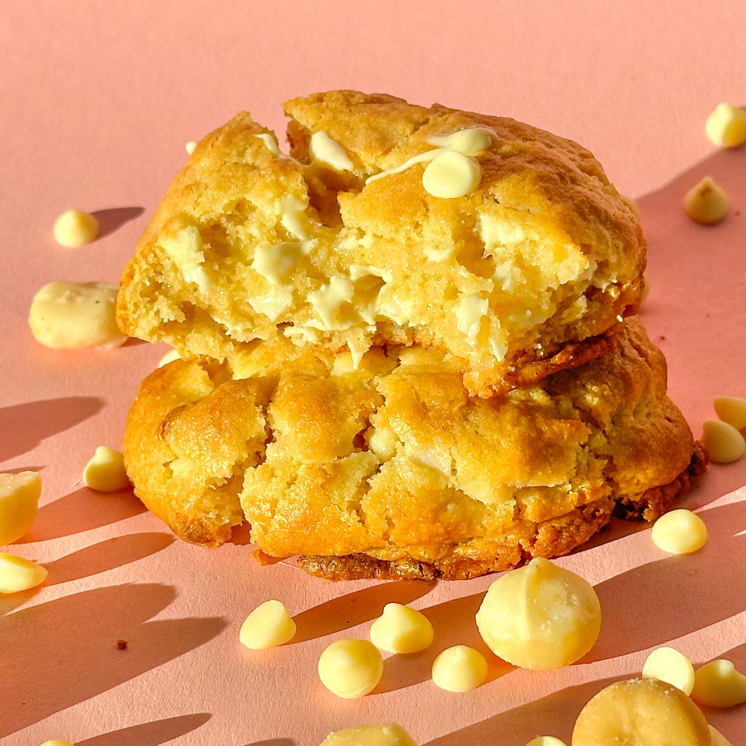 Indulge in the decadent flavour combination of our handmade White Chocolate Macadamia Cookies. Each cookie is made with a buttery, homemade cookie dough filled with premium roasted macadamia nuts and chunks of rich French white chocolate. The result is a delicious treat that is perfect for satisfying a sweet craving. Treat yourself or someone special to a batch of these irresistible cookies from our cookie shop.